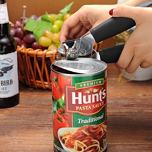 Can Opener Manual, Wekine Smooth Edge Can Opener and Bottle Opener Set, Can Opener with Heavy Duty Stainless Steel Blade&Ergonomic Soft Grip Handle&Easy Turn Knob for Arthritis, Seniors (Black)