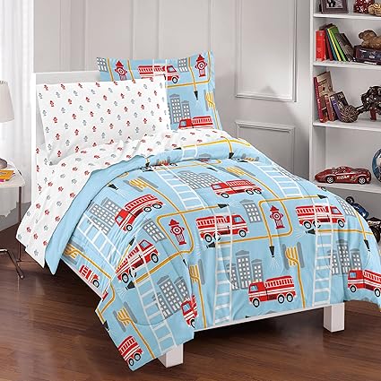 - 5 pc set includes: 1 comforter, 1 standard sham, 1 flat sheet, 1 fitted sheet, 1 pillowcase