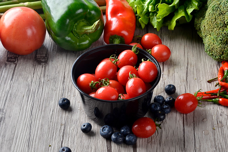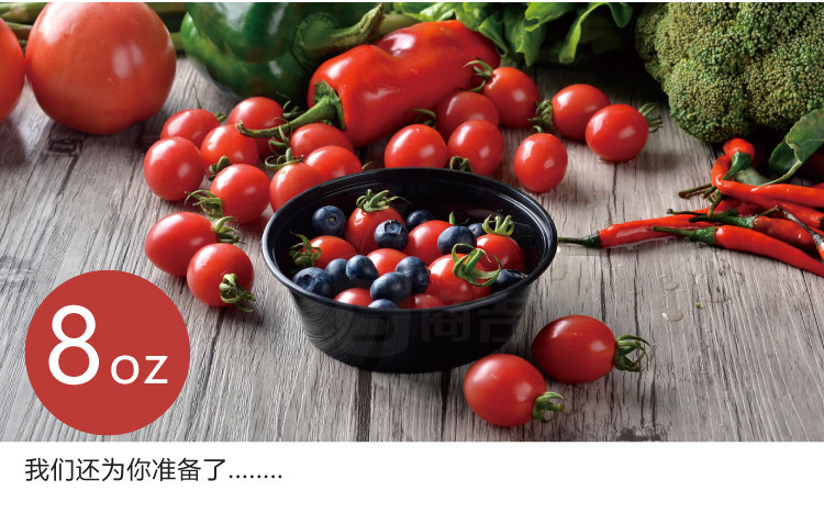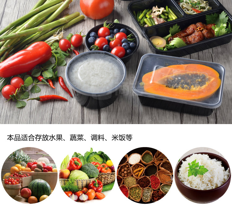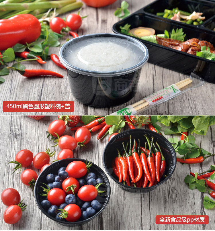 高档黑色塑料汤碗一次性碗圆形外卖快餐打包盒水果盒带盖50套
