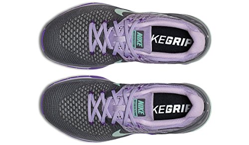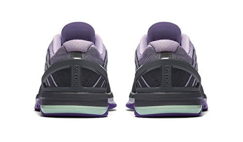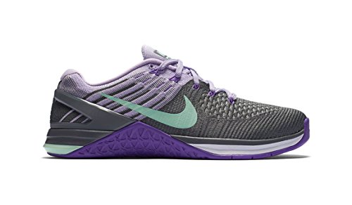 The Metcon Flyknit design includes an dual-density drop-in midsole, along with with a sticky rubber forefoot in the outsole, a low-profile heel clip, and vectran filament "Flywire" technology in the midfoot. Metcons are built for a lockdown fit and a dependable flat platform foundation, improving explosiveness on heavy lifts. The shoe's molded flex grooves, light breathable construction, and embroidered TPU reinforcement also make it uniquely optimized for the demands of high-intensity, cross-training athletes 0
