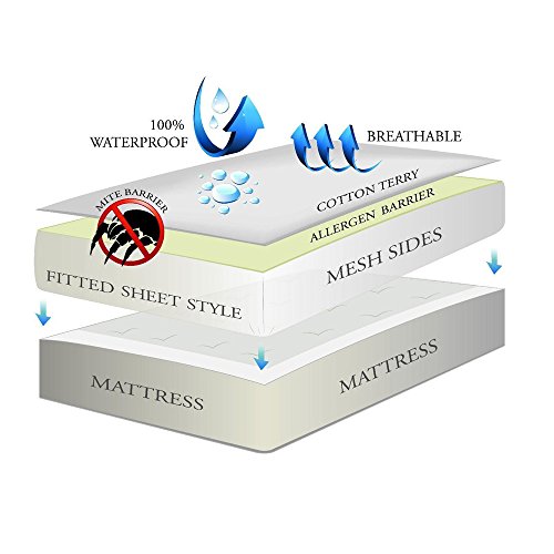 -. Title : Waterproof Mattress Protector, Bed Bug Proof, Hypoallergenic - Premium Fitted Cotton Terry Cover, Dust Mite Protection, Machine Washable and Breathable - 10 Year Warranty