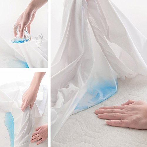 -. Feature : • ALLERGY PROTECTION: our top quality mattress cover effectively protects you from dust mites, bacteria, mold, and many other allergy triggers / • 100% WATERPROOF: The polyurethane barrier effectively blocks fluids and vinyl free, so you can sleep comfortably and peacefully while protecting your mattress from wear and tear. / • EASY TO CLEAN: Just throw these in the washer and dryer, and they're ready to once again protect your bed. The fitted sheet style ensures it won't slip off the bed and will stay in place. / • COOL & COMFY: Enjoy the soft, lightweight, breathable feel of our mattress protector, featuring polyester material that allows airflow to pass through, which keeps you cool & comfy! / • SAFE FOR THE WHOLE FAMILY: We've got the whole family covered! Our mattress protectors are Vinyl, PSA and Phthalate free with a breathable polyester surface that is safe & cozy.