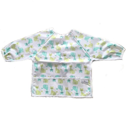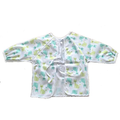 Waterproof long sleeved bib - lightweight bibs with sleeves with ties and feeding pocket, best for infant, smock, toddler, baby 6-30 months girl and boy (Cats)