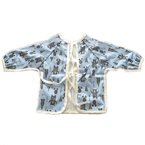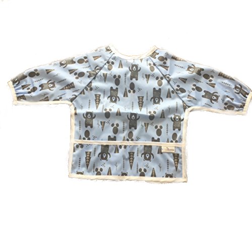 Waterproof long sleeved bib - lightweight bibs with sleeves with ties and feeding pocket, best for infant, smock, toddler, baby 6-30 months girl and boy (Bears)