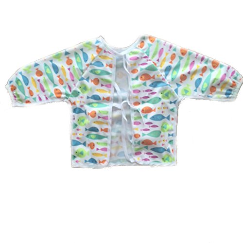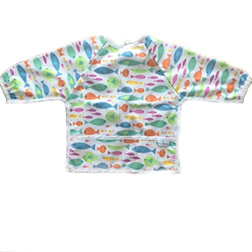 Waterproof long sleeved bib - lightweight bibs with sleeves with ties and feeding pocket, best for infant, smock, toddler, baby 6-30 months girl and boy (Fish)