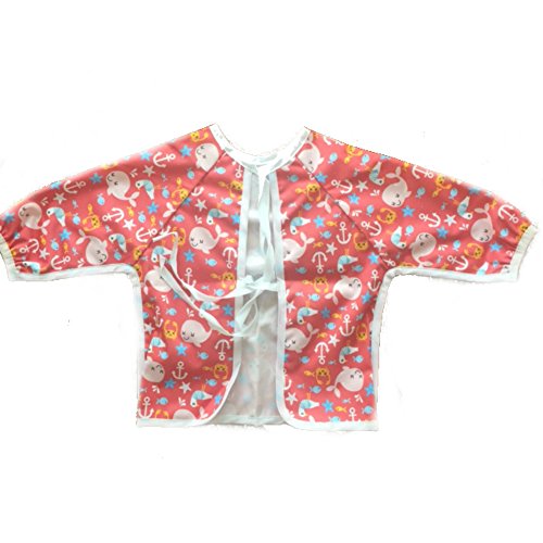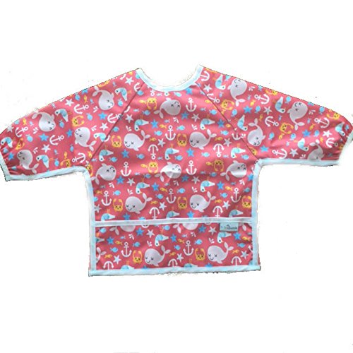 Waterproof long sleeved bib - lightweight bibs with sleeves with ties and feeding pocket, best for infant, smock, toddler, baby 6-30 months girl and boy, Baby Whale