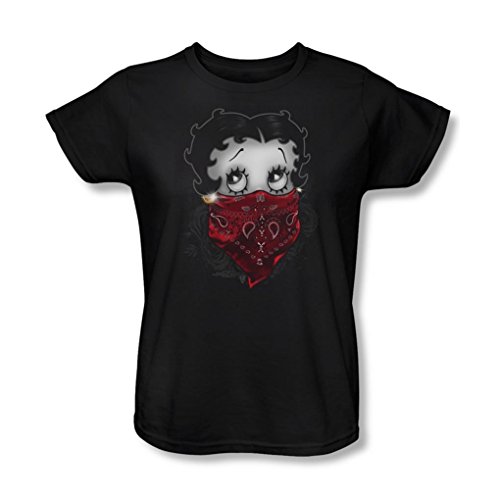 -. Title : Betty Boop - Womens Bandana & Roses T-Shirt In Black