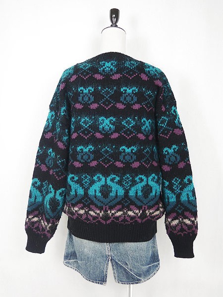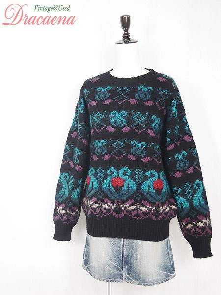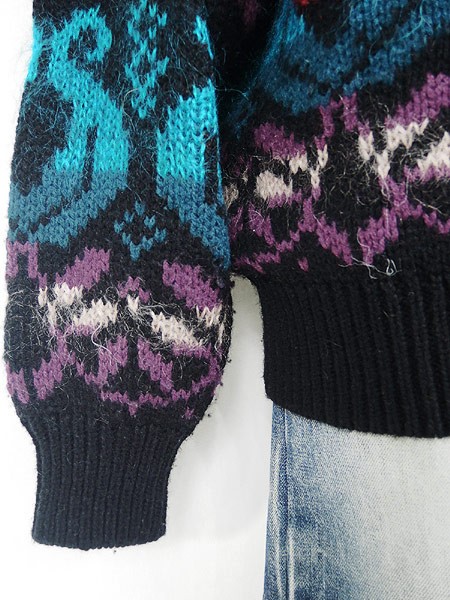 Ladies ブランド- カラー黒ベース・緑・紫 メール便不可 コンディション★★★ モデル- 素材モヘア9%・ウール15%・ナイロン1%・アクリル75% 表記サイズL 実寸サイズ 着丈 63 cm 身幅 58 cm 肩幅 57 cm 袖丈 51 cm ※ウエスト・ヒップ以外は平置き採寸