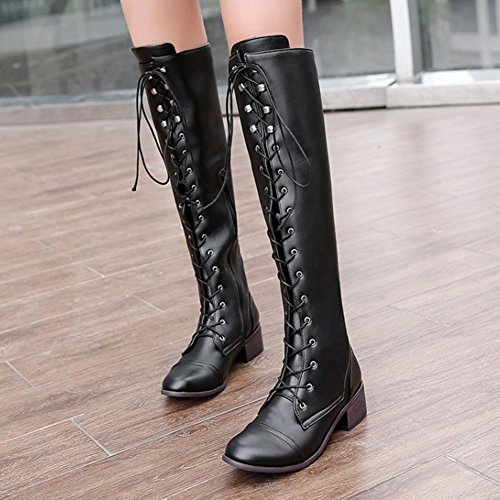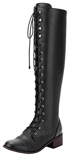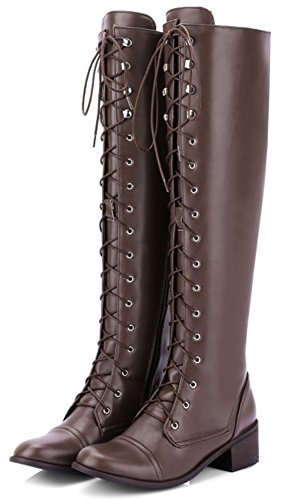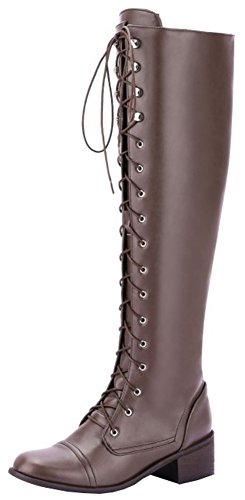 (Mofri)/Women's/Boots/DIRECT FROM USA/Mofri Women's Retro Block Low Heel Round Toe Lace up Knee High Riding Boots With Side Zipper