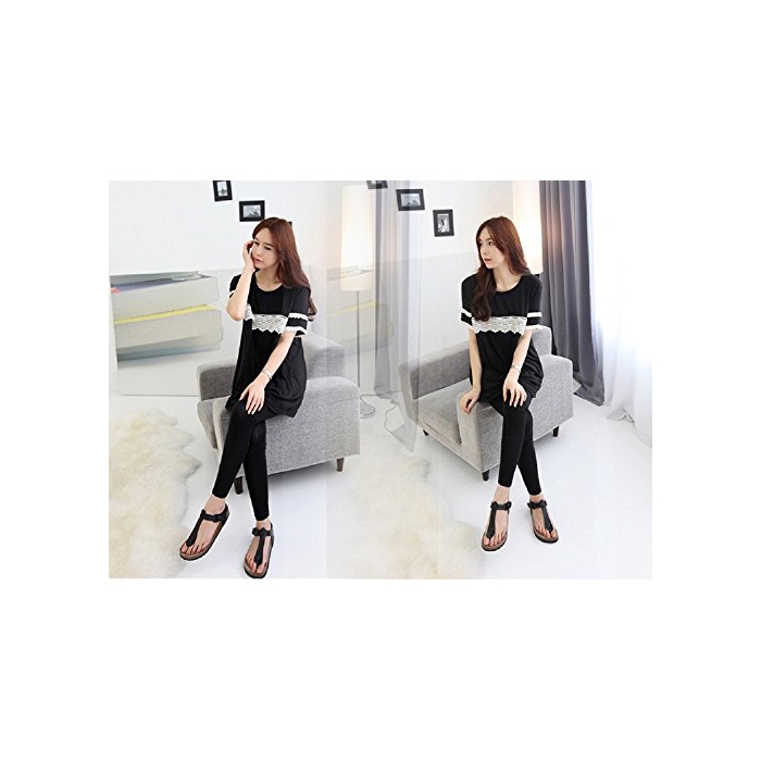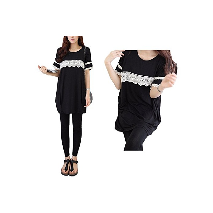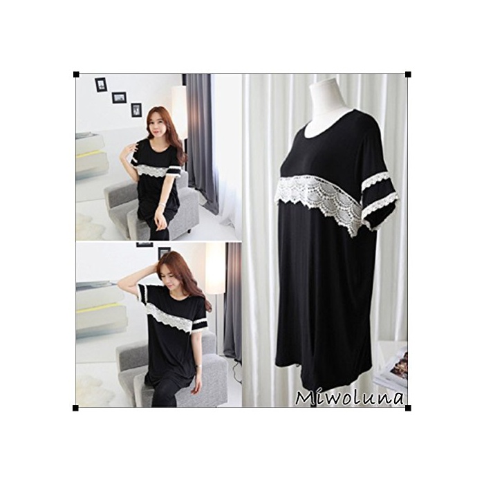 Miwoluna 마타니티 T셔츠 롱 수유복흉과 소매의 레이스가 액센트 수유구 부착 M