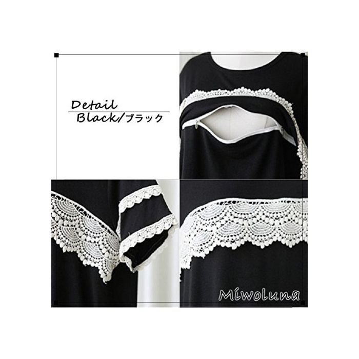 원본상품명: ミウォルナ マタニティ Tシャツ 授乳服 授乳口 半袖 ロング レ?ス ブラック レディ?ス