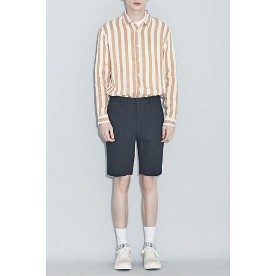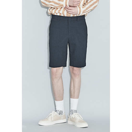- 시원한 시어서커 잔패턴의 셋업 남성 하프 팬츠.