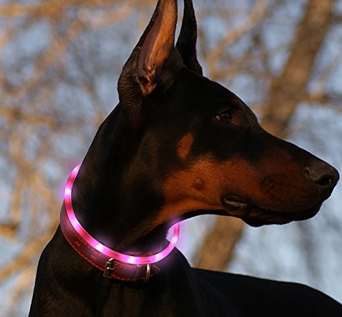 Safety visibility preeminent light-emitting collar attention perfect score sparkly collar walk outing accident prevention safety measures LED shiny collar street at night of Orchidtent dog (pink)