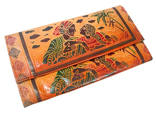 Romantic Couple Design Genuine 100% Pure Leather Shantiniketan Clutch hand Purse
