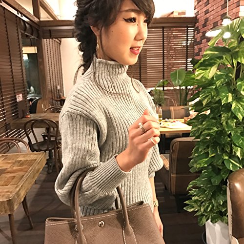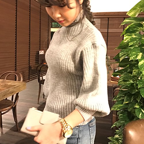 -. Title : nico nimo (ニコニモ)レディースセーター秋冬 ニットプルオーバーグレー 秋冬ニットレディースふんわり ニットレディース丸首 袖たっぷりニット ニットボトルネック