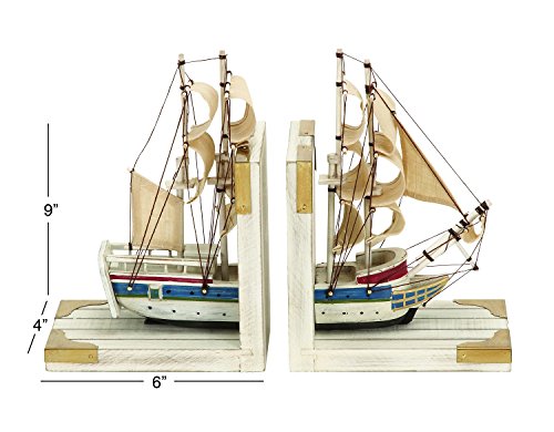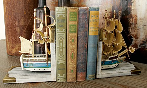 Deco 79 Nautical Coastal Book Ends As a White Trade Ship