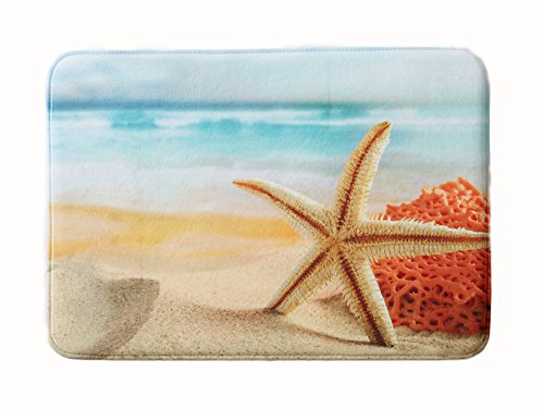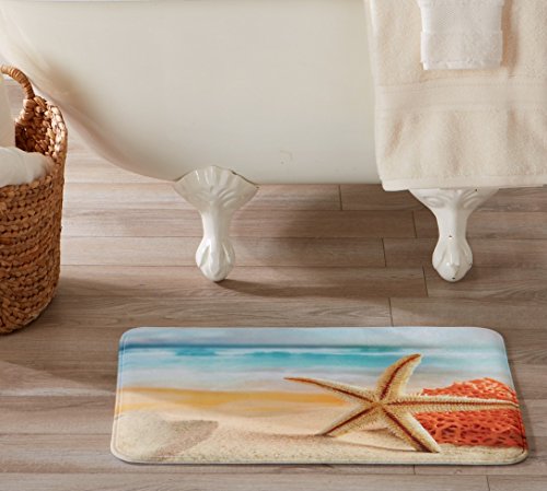 Coastal Printed Memory Foam Anti-Fatigue Bath Mat. Multi-Purpose, Non-Slip, Absorbent Laundry Room, Kitchen, Bath and Shower Rug. Eliza Collection By Great Bay Home Brand (Star Fish, 20" x 32")