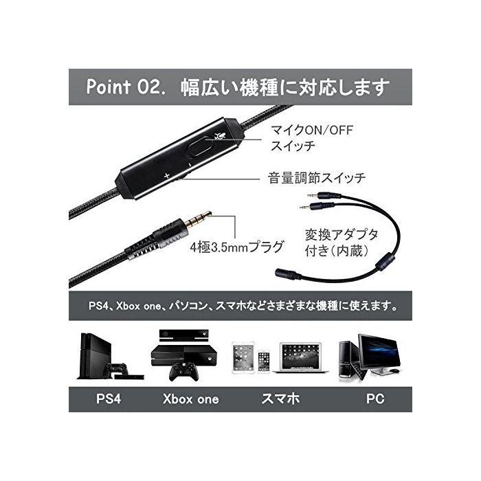 [폭넓은 호환성] 본체에 연결할 수 있는 것 뿐(만,만큼)으로 즉각 사용으로 옵니다.내장 무료3.5mm 어댑터 붙기 때문에,여러가지 기종에 적응에서 옵니다.PS4,Xbox One,PC,닌텐도 Switch나 3DS,노트 PC,iPad,《스마호》,PSP 게임등으로 대응합니다.구형Xbox One콘트롤러에 접속할 때,별도 마이크로 소프트 어댑터(포함되어 있지 않습니다)가 필요하기 때문에 주의해 주십시오.