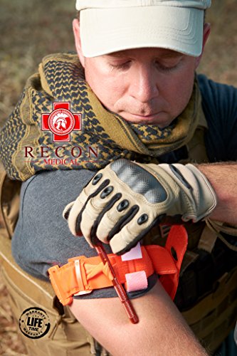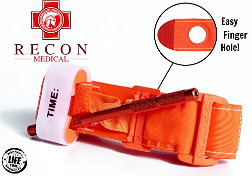 Tourniquet -(ORANGE) Recon Medical Gen 3 Mil-Spec Kevlar Metal Windlass Aluminum First Aid Tactical Swat Medic Pre-Hospital Life Saving Hemorrhage Control Registration Card 1 Pack