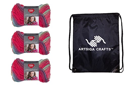 Red Heart Boutique Unforgettable Yarn (3-Pack) Parrot E793-3945 with 1 Artsiga Crafts Project Bag