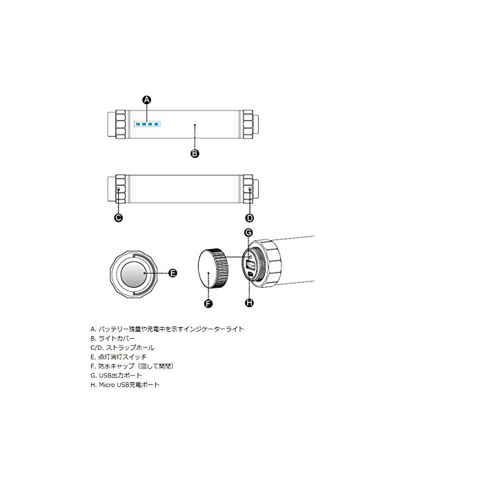 원본상품명: ダイビング?中電? 充電式 防水 IP68 LEDランプ 旅行用品【WOLFTEETH】100ル?メン モバイルバッテリ?機能付 5モ?ド SOS 4061