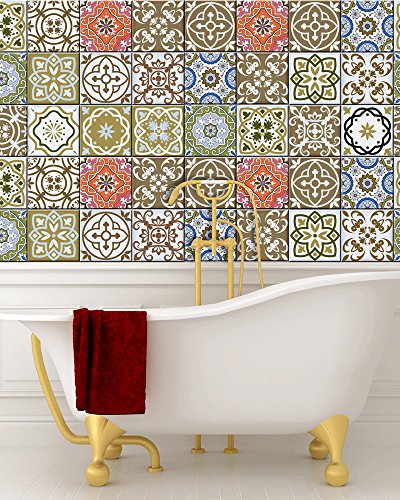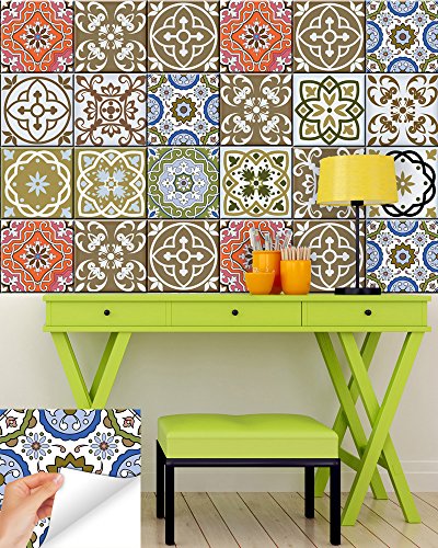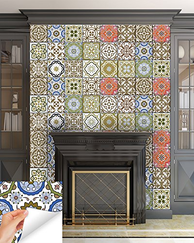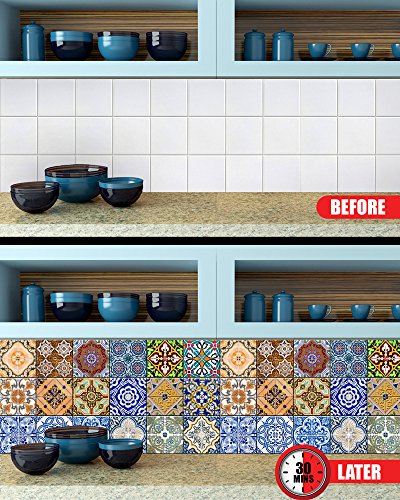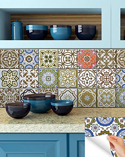 Backsplash Tile Stickers 24 PC Set Authentic Traditional Talavera Tiles Stickersl Bathroom & Kitchen Tile Decals Easy to Apply Just Peel and Stick Home Decor 4x4 Inch (Colorful tiles)