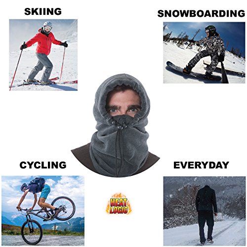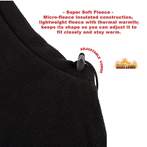 -. Feature : Super Soft Fleece - Micro-fleece insulated lightweight construction, light fleece with thermal warmth; keeps its shape so you can adjust it to fit closely and stay warm. Use the cords to pull it in tight and trap heat. / 4-in-1 - Three adjustable cords for customization; wear it as a hat hood, neck warmer, balaclava face mask, or a gaiter scarf. Neck and hood attachment protects you from all wind, snow, and cold. / Versatile for Added Value - The perfect outdoor sports mask - works as a hat, scarf and ear warmer. Or add it on as a detachable hood to make your jacket warmer when it gets colder at night. That necessary accessory for all your hoodless jackets. / Warm Protection - Add it as a thermal lining that is not bulky when you go skiing, snowboarding, construction work, hiking, camping, shoveling, running marathons, motorbiking, hunting, or exercising. Tell us how you use your Heat Logic Hood in your review. / Comfortable - One size fits most. Stretches to fit over your head. Basic dark colors made to be worn by both men and women. Clean and classic styling allow you to use it with any jacket too.