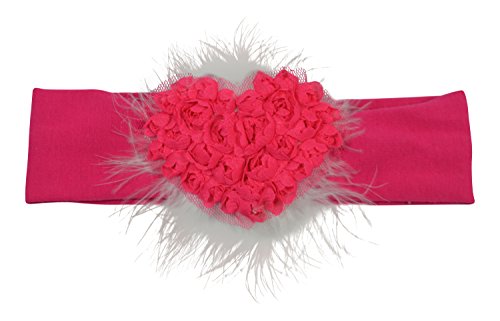 PLH Bows Lycra Headband with Heart Flower (Pink)
