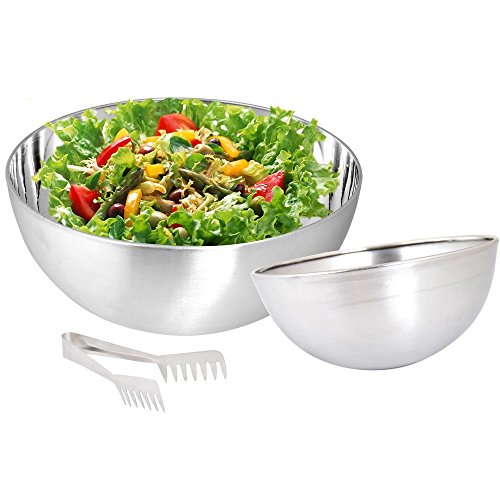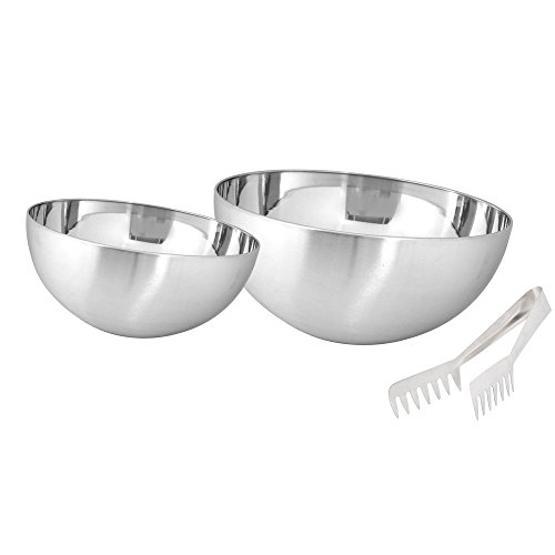 Kosma Set of 2 Stainless Steel Salad Bowl | Mixing Bowl | Round Serving Bowl - 13cm, 36cm with "FREE" Serving Tong