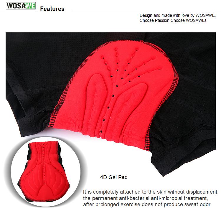 4D Gel Pad; 4D Gel Pad is completely attached to the skin without displacement, the permanent anti-bacterial anti-microbial treatment, after prolonged exercise does not produce sweat odor; side lining soft, minimize the friction, quick-dry function,make your ride even more dry and comfortable.