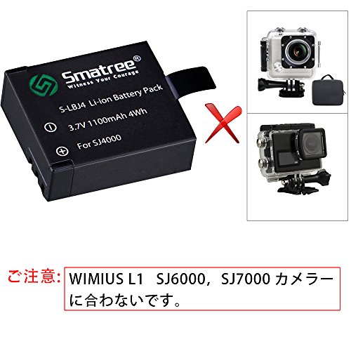 -. Feature : ご注意 WIMIUS L1,SJ6000,SJ7000に合わないです。リチウムイオン互換バッテリー1100mAh:2個 純正品のバッテリーに比べて約20分、動画撮影時間が増します。 / 急速デュアルバッテリー充電器1個 miniUSB ケーブル1本、バッテリー充電は2個同時でも各800mA出力が可能です。 / ご注意: 充電器のUSB端子は二つがあり、マイクロUSBポート及びミニUSBポート両方利用できます。付属ケーブルはミニUSBです。マイクロUSBケーブルがありません。 / SJCAM SJ4000/SJ5000/DBPOWER/MUSON/Patech/ Aoleca など小型 防水 スポ ーツカメラーに対応します / Smatree社の純正品のみ作動を補償致します。その他模造品や類似品でのご使用はご遠慮くださいませ。