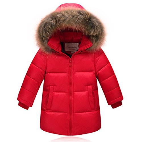 -. Title : キッズダウンコート 男女兼用 ダウンコート 全3色 男の子  女の子 ダウンジャケット ファー付き コート ダックダウン 90入れ  子ども防寒服 無地  保温 レッド