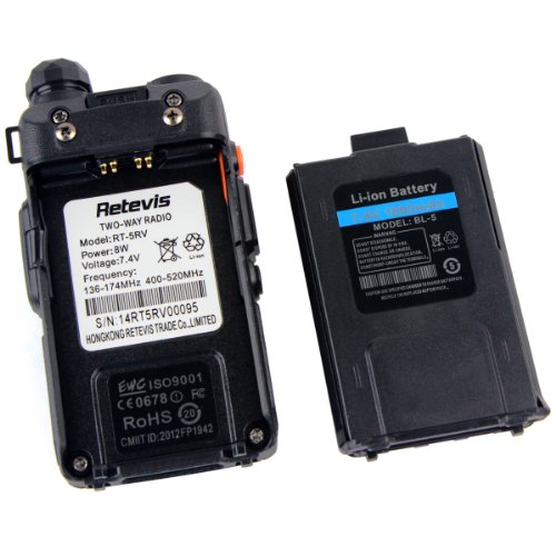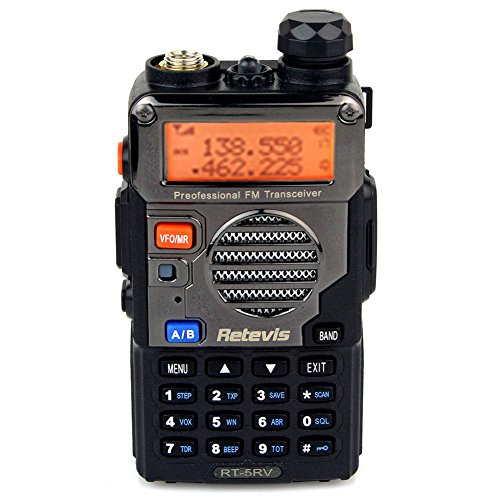 -. Binding : Electronics -. Brand : Retevis -. Color : Black -. EAN : 0631976600330 -. Feature : More Stubborn Case, More Rich and Enhanced Features / Crystal clear FM Broadcast for downtimes or in emergency communication situations / Built-in high brightness LED could also be used as a flashlight or alert system for emergency situation / Keyboard Programming: Allows you to set up new channels without a computer / Comes with all necessary accessories, backed up by 12 Months Warranty -. Label : Retevis -. Manufacturer : Retevis -. Model : Retevis RT-5RV -. PackageQuantity : 1 -. ProductGroup : Car Audio or Theater -. ProductTypeName : TWO_WAY_RADIO -. Publisher : Retevis -. Studio : Retevis -. Title : Retevis RT-5RV 2 Way Radio 5W 128CH VHF/UHF 136-174/400-520 MHz VOX Dual Band Dual Frequency FM with Earpiece Walkie Talkie Ham Amateur Radio Transceiver (1 Pack) -. UPC : 631976600330