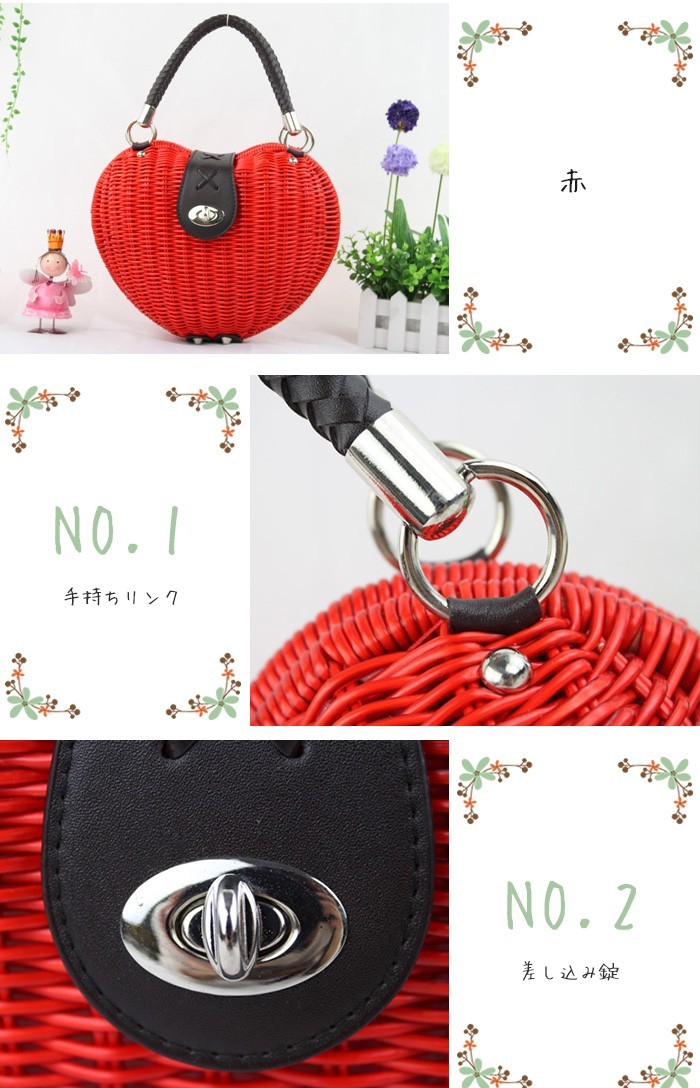 ★ご注意:こちらの商品はお客様がご入金後、メーカーから取り寄せさせて発送する予定です。ご入金からお届けまで約5-7営業日ほど時間がかかります。予めご理解いただきました上でご注文下さいますようお願いいたします。★ナチュラルなかごバッグが新登場!★女性のリアルな「欲しい!」から生まれたデザイン!★春夏のお出かけに連れて行きたい、爽やかなバッグ!★女子力もアップする!★持ってるだけで大人可愛いかごバッグ!★素材:ストロー★重量:0.6kg★サイズ:横15cm 高さ22cm マチ6cm 手持ちの高さ15cm※サイズは平置きでの実寸になっております。0.5cmの誤差がある場合があります。予めご了承下さいませ。★カラー:赤 白※お客様ご使用のPC環境により商品画像のカラーが多少異なる場合があります。仕入時期により多少デザインなど異なる場合があります。ご了承ください。