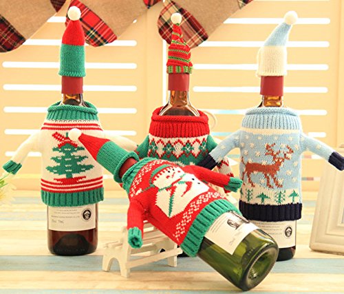 Fashionclubs Christmas Wine Bottle Knitted Ugly Sweater Covers Set,Set of 4