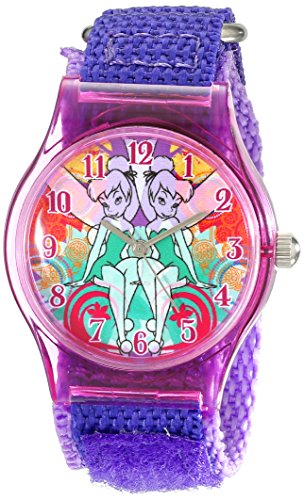 -. Binding : Watch -. Brand : Disney -. Color : Purple -. Department : girls -. EAN : 0843231079854 -. Feature : Round Plastic Watch with Disney's Tinker Bell character on dial. / Meets or exceeds all US Govt requirements and regulations for Children's watches. / Recommended for Ages 7-12 years old. / Accurate Japanese Quartz movement, scratch resistant mineral crystal, hook and loop Nylon strap. / Water Resistant to 99 feet: withstands rain and splashes of water, but not showering or submersion. / 1 Year Limited Manufacturers Warranty -. Label : Disney-Roll up -. Manufacturer : Disney-Roll up -. Model : W001704 -. MPN : W001704 -. PackageQuantity : 1 -. PartNumber : W001704 -. ProductGroup : Watch -. ProductTypeName : WATCH -. Publisher : Disney-Roll up -. Studio : Disney-Roll up -. Title : Disney Kids' W001704 Tinker Bell Analog Display Analog Quartz Purple Watch -. UPC : 843231079854
