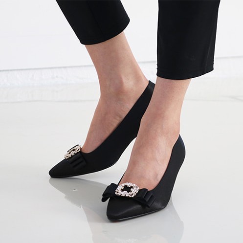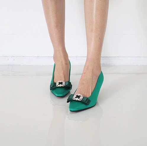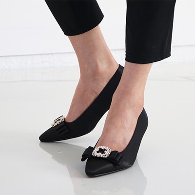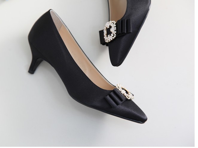 商品名:パンプス レディース ポインテッドトゥ ピンヒール リボン サテン 2018 春 ファッション 靴 婦人靴