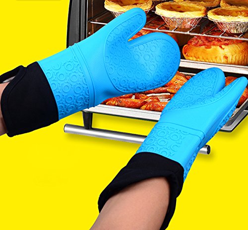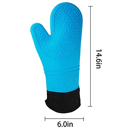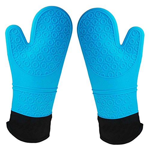 Tailbox Silicone Oven Mitts - 1 Pair Extra Long Quilted Cotton Lining Waterproof Professional Heat Resistant Kitchen Gloves - Best Protection for Barbeque, Cooking & Baking (Blue)