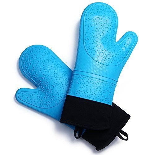 - HIGH QUALITY MATERIALS - Our silicone oven mitts are made of 100% BPA free & FDA approved silicone, and with a very soft quilted cotton & polyester blend interior lining, all material used is non-toxic.