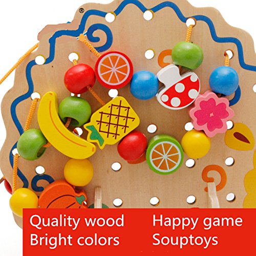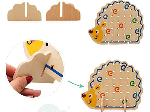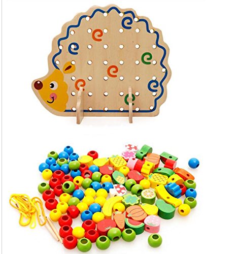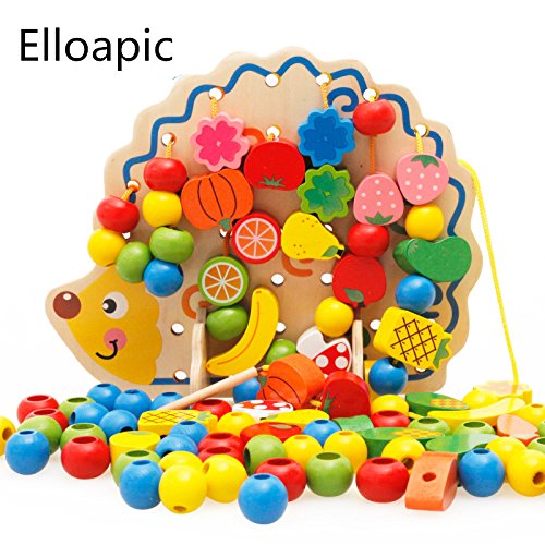 1.Elloapic Fruits & Vegetables food Rope Lacing Beads on Hedgehog Board Early Teaching Toy