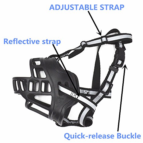 How to measure your dog for these muzzles: Measure the circumference midway between the tip of the snout and eyes, under the chin and over the top of your dog's muzzle. Size 1: Snout 7-8"(18-21cm) , Support /3.3-11 lbs(1.5-5kg) Size 2: Snout 8-10"(21-26cm),Support/8.8-27.5 lbs(4-12.5kg) Size 3: Snout 10-12"(26-30cm),Support 22-55 lbs(10-25kg) Size 4: Snout 12-13.5"(30-34cm),Support/49.6-82.6 lbs(22.5-37.5kg) Size 5: Snout 13.5-14.5"(34-37cm),Support/82.6-121 lbs(37.5-55kg) Size 6: Snout 15-17"(38-43cm),Support/121-154 lbs(50-70kg) JYHY is committed to providing each customer with the highest standard of customer service!90 Days money back,365 Days quality warranty!