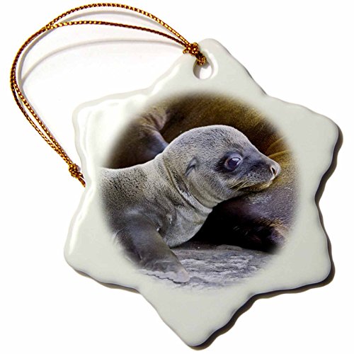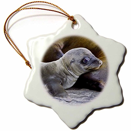 3dRose orn_86457_1 Ecuador, Galapagos Islands, Sea Lions SA07 RBE0059 Ralph H. Bendjebar Snowflake Porcelain Ornament, 3-Inch