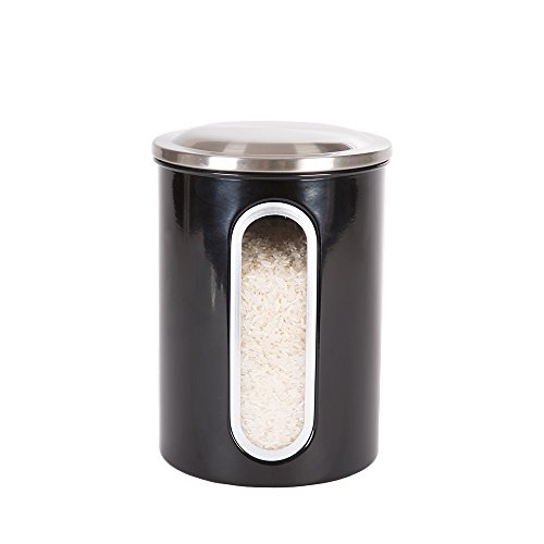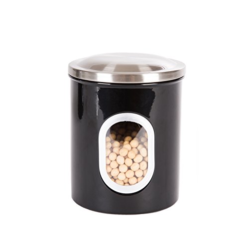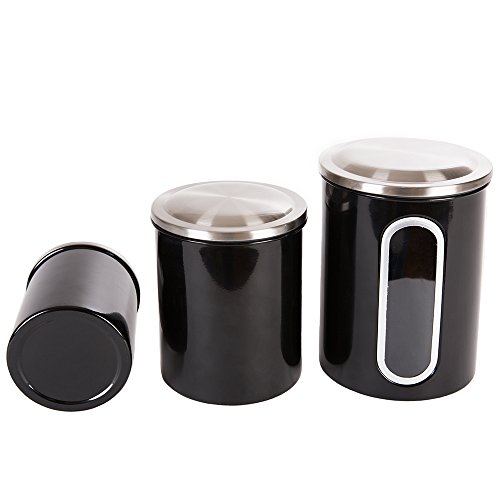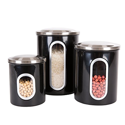Thrich Airtight Window Kitchen Canisters with Fingerprint Resistance Stainless Steel Lids (Set of 3), including 1 each 41oz, 85oz, 129oz (Black)