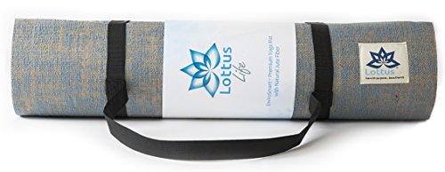 LOTTUS LIFE Natural Jute Fiber Premium Yoga / Exercise Mat w/ Strap – Extra Thick 8mm – Eco-Friendly – Best Yoga Mat for Pilates, Gym, Workout, Home – Extra Long 72" Non-slip Memory Foam-like