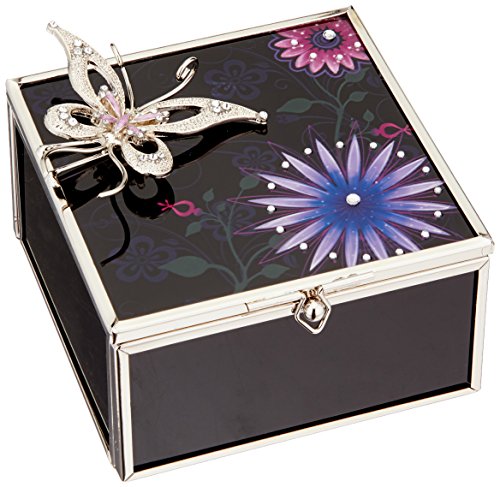 StealStreet SS-A-38138 Square Butterfly Jewelry Box and Vivid Black Bright Flowers Fantasy