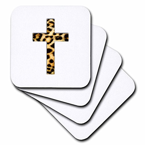 3dRose cst_185472_3 Christian Cross with Leopard Spot Pattern Faux Cheetah Animal Print Ceramic Tile Coasters (Set of 4)