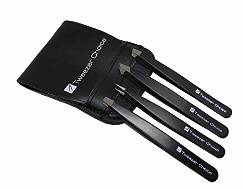 Tweezer Choice Set 4-Pieces Professional Stainless Steel Tweezers with Travel Case - Best Precision Eyebrow and Splinter Ingrown Hair Removal Tweezer Tip (Black)