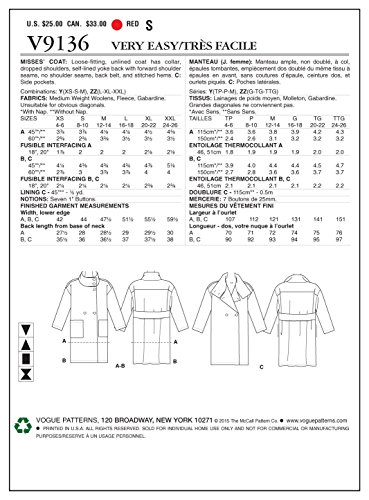 Vogue Patterns V9136 Misses' Coat, Size Y (XSM-SML-MED)