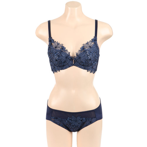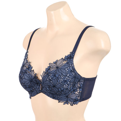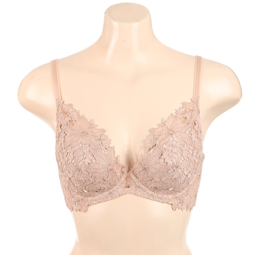 선세한 컬러체인지 케미컬자수로 전면을 장식한 꾸띄르라인 부직포 브라입니다,