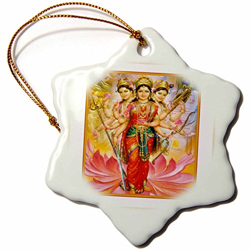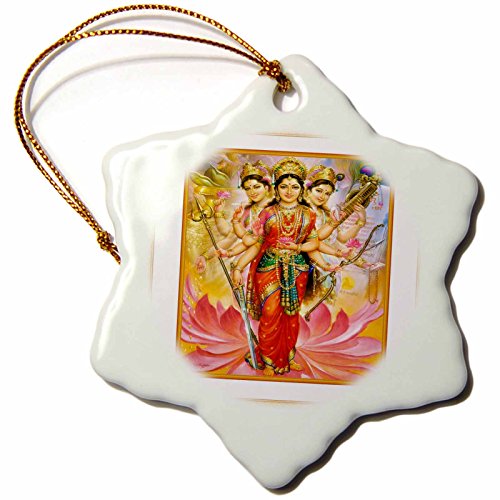 3dRose orn_80274_1 Hindu Divine Mother Lakshmi with Ornate Frame Snowflake Porcelain Ornament, 3-Inch